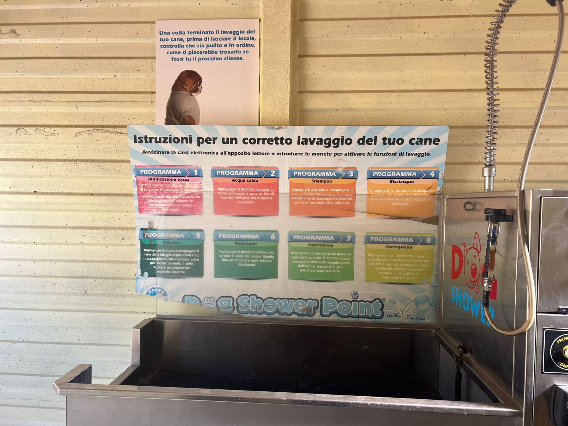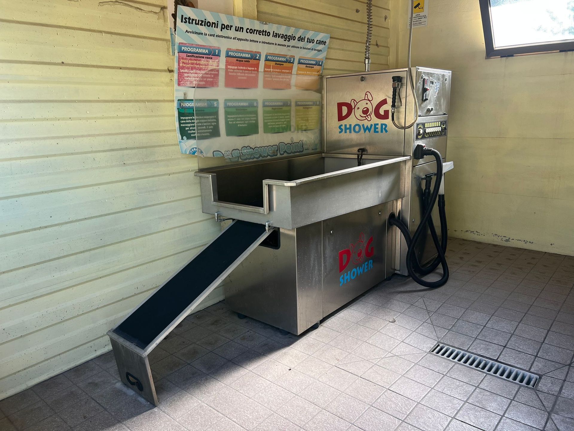 Questo servizio è disponibile per consentire al tuo cane di fare un bagno rinfrescante e pulente. Il servizio è completamente autonomo e attivo 24h su 24. L'obiettivo è offrire una soluzione comoda per mantenere pulito il tuo animale domestico.